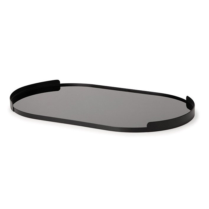 BANDEJA EM METAL COM VIDRO - G   PRETA